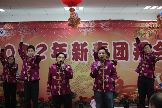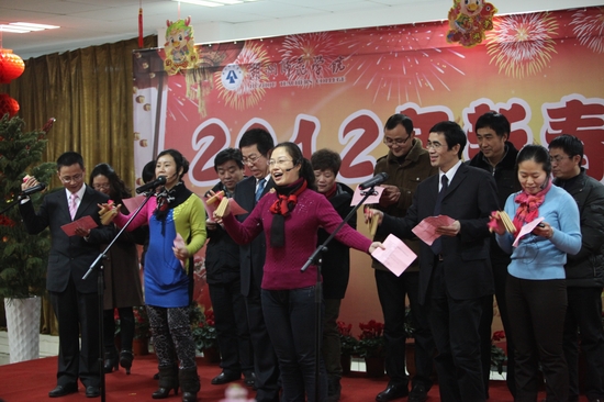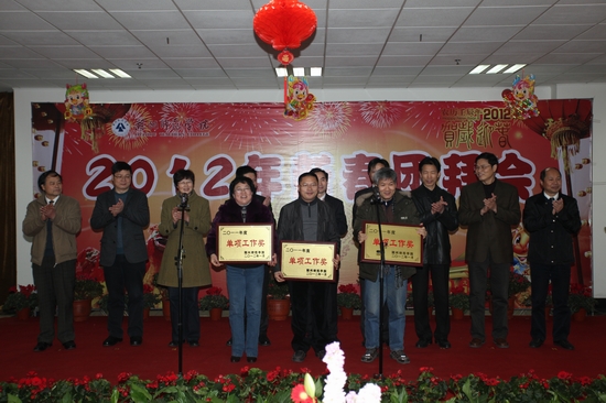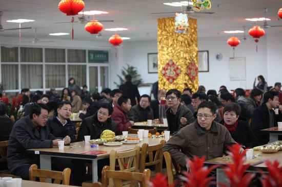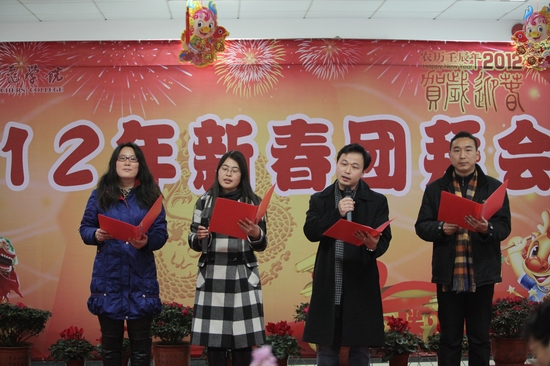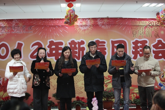 玉兔辞岁贺硕果,祥龙迎春开新篇。1月13日下午,学校图书馆七楼会场内张灯结彩,欢声笑语,洋溢着欢度春节的喜悦气氛,2012年新春团拜会在这里隆重举行。校党政领导,老领导,特聘教授,中层干部,附属医院党政班子成员,调研员,各民主党派负责人,省、市人大代表、政协委员,教授、博士等出席团拜会。大家欢聚一堂,畅叙友谊,共享新年喜悦,共话发展愿景。会议由院长胡璋剑主持。
