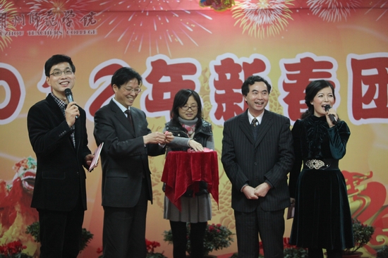 党委书记刘剑虹代表学校党委和行政向全校师生员工和离退休老同志们致以节日的问候。刘剑虹指出,刚刚过去的2011年,是全体师生团结奋进、固本强基、结出硕果累累的一年,是师院历史上具有里程碑意义的一年。学校各项事业取得长足进步,顺利地完成了年初既定的工作任务和目标,党建工作创先争优,教育工作和办学水平显著提升,人才培养质量不断提高,师资队伍实力得到增强,科技与服务地方工作成绩喜人,招生就业工作稳步提升,平安校园建设扎实有效,学校各项工作均跃上新台阶。正式成为培养硕士专业学位研究生试点工作单位和荣获全国文明单位,更是在师院的发展史上画上了浓墨重彩的一笔。