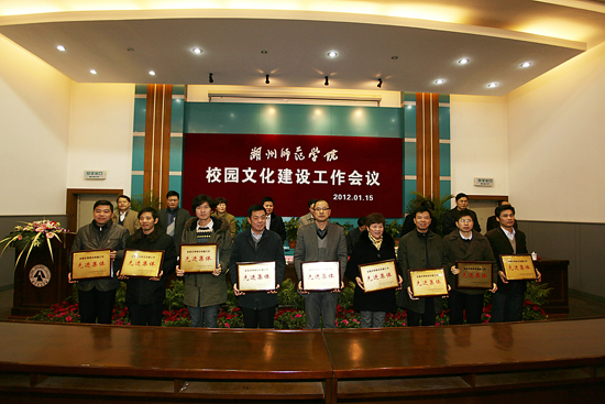 会议表彰了全国文明单位创建工作先进集体、先进个人。校沈行楹联艺术馆、“两赵”纪念馆馆长王增清,商学院院长汪建丰,生命科学学院总支书记钱学芳,校团委书记陈国锋就校园文化建设和文明创建工作分别发言。
