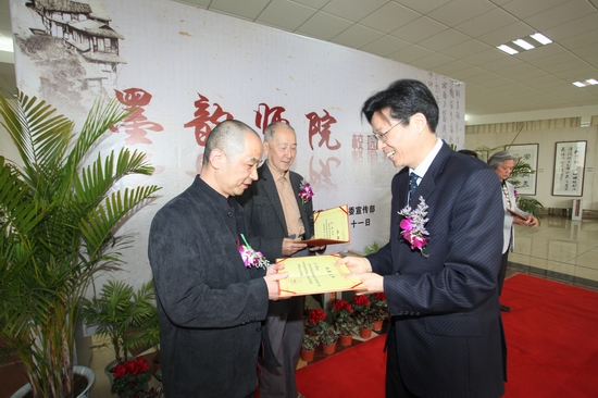 开幕式上,胡璋剑为客座教授、客座讲师颁发书法作品收藏证书,并宣布“墨韵师院”校园书法作品展开幕。