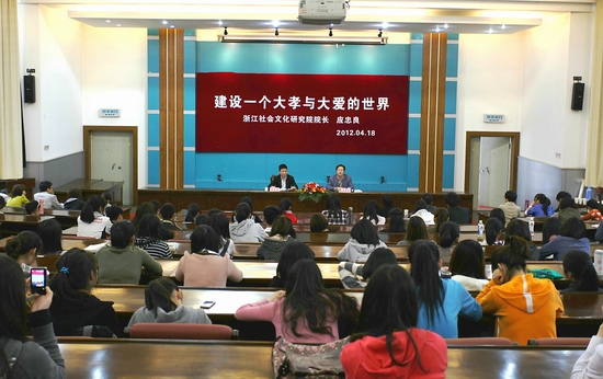 讲座中,应忠良围绕中国传统文化,尤其是孝道文化,从忠、孝、礼、义、信、廉、耻等核心伦理价值,阐述整个社会与国人的道德规范,以及处世为人的基本礼义和道理,同时也阐明大学生在传承孝道文化的社会责任和义务,冀盼此举对构建和谐社会、重塑丈明古国形象、增强国家软实力有所助益。