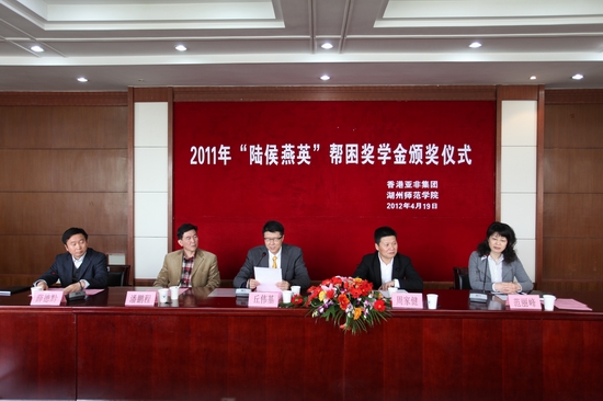 4月19日,我校在行政楼会议中心举行“陆侯燕英”帮困奖学金颁奖仪式。党委副书记周家健、香港亚非集团董事丘伟基、香港亚非集团湖州金騄实业有限公司董事潘鹏程出席,“陆侯燕英”帮困奖学金管理委员会成员及奖学金获得者参加了颁奖仪式。