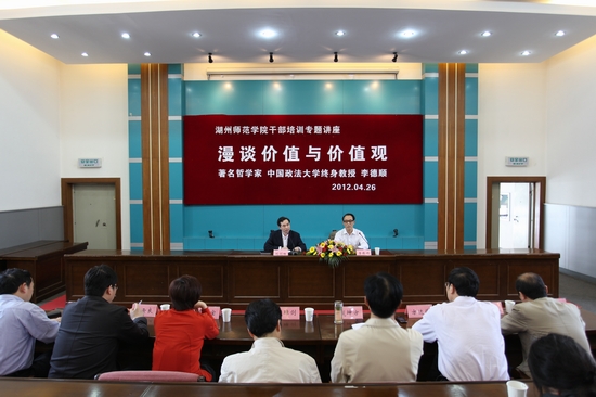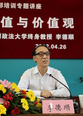 4月26日下午,著名哲学家、中国政法大学终身教授、中国社会科学院研究生院教授、博士生导师李德顺教授应邀来校,作“漫谈价值与价值观”干部培训专题报告。校党政领导班子成员,中层干部、全体教授,各民主党派、知联会负责人,师生代表等一起聆听了报告。报告会由党委书记刘剑虹主持。