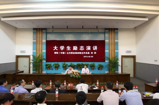 刘润作为微软高管,更是一个富于冒险精神和充满激情的行动者。他结合自己的亲身经历,以生动幽默的形式向大家讲述了“戈壁挑战赛”、“出租车司机给我上的MBA课”、“榨干你所能学习的一切东西”、“买张船票去南极”四个小故事。通过这四个浅显易懂的小故事,刘润向大家分别阐述了坚持、思考、行动和激情对于实现人生目标的重要性,并指出这八个字即是通往梦想的船票。精彩的演讲博得了听众热烈的掌声。互动环节中,学生们踊跃提问,刘润与大家进行了经验交流与分享,把此次讲座推向了高潮。