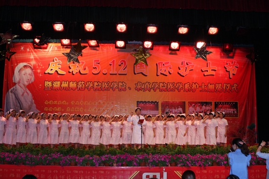 5月10日,医学院、求真医学系隆重举行纪念5•12国际护士节100周年庆祝大会暨第九届护士加冕仪式。校党委副书记周家健、湖州市卫生局副局长魏明、第35届南丁格尔奖得主邹瑞芳、第42届南丁格尔奖得主潘美儿及湖州市民政局相关负责人、湖州市护理界前辈等相关人员出席了庆祝活动。