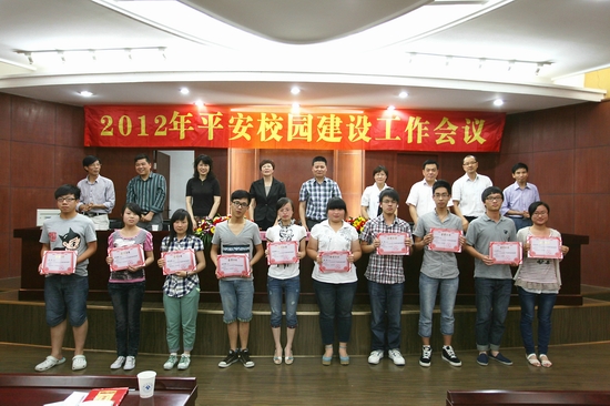 5月16日下午,我校召开2012年“平安校园”建设工作会议。校党委副书记周家健、校纪委书记“平安校园”建设领导小组副组长徐桂宝出席会议,学校“平安校园”建设、综合治理领导小组成员,各学院分管安全工作负责人、办公室主任、分管安全工作辅导员,全体保卫干部、附属第一医院保卫科负责人,“平安校园”建设先进个人、平安单位代表、学生“平安校园创建奖”获得者代表参加了会议。会议还特邀李小平警官出席。