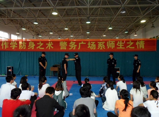 为响应我校第四届“防灾减灾宣传周”的号召,校保卫处与体育学院共同举办以“警校合作学防身之术 警务广场系师生之情”为主题的“实战防身术”讲座。讲座由吴兴公安分局织里分局巡特警大队的大队长陆旻主讲,主要针对夏季骚扰抢劫事件频发进行了防抗侵害意识的教育和防身要术的指导讲解。