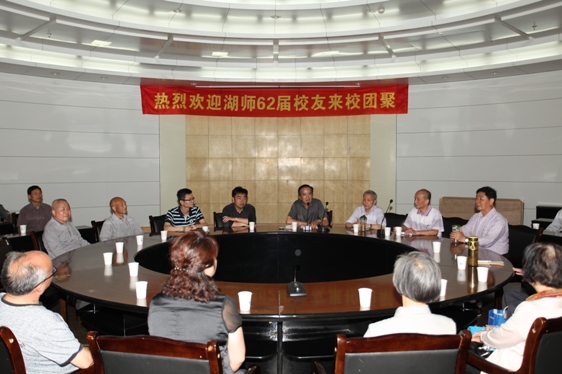 5月28日下午,70多位原湖州师范1962届老校友怀着对母校的深深眷恋,阔别50年后重返母校,召开毕业五十周年同学会。现已80多岁高龄的朱小瑞、龚闻龙、候雅珍三位当年教师特邀出席同学会,学校对外联络与发展办公室、校友联络办公室以及教师教育学院等负责人热情接待了校友一行。