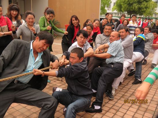 4月25日,新疆班学员进行了拔河对抗赛,比赛现场热闹非凡,鼓劲声、加油声吸引了许多同学前来观看。在男生比赛中,领队和辅导员担当裁判,场内选手奋力拼搏,场边啦啦队全力呐喊,最后二班男生以2:0轻松夺冠。随后进行的女生比赛中,双方争夺激烈,场面一度僵持,最终二班女生凭借微弱优势以2:1赢得胜利。