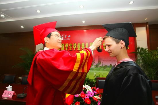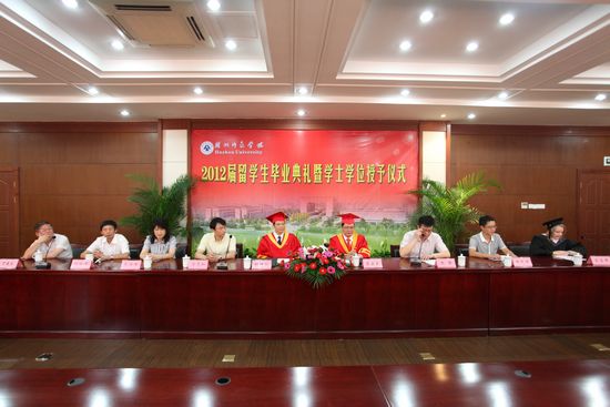 6月29日,我校举行2012届留学生毕业典礼暨学士学位授予仪式。校长胡璋剑、副校长蒋云良出席,教务处、外事处、学工部、文学院、艺术学院等单位相关负责人,教师代表,国际教育导师丁建永先生参加仪式。