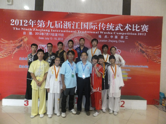 近日,在刚刚结束的2012年第九届浙江国际传统武术比赛中,我校武术队13名运动员经过三天激烈角逐,共获21枚金牌、4枚银牌和1枚铜牌,并被授予“传承中华武术,弘扬民族精神”贡献奖。