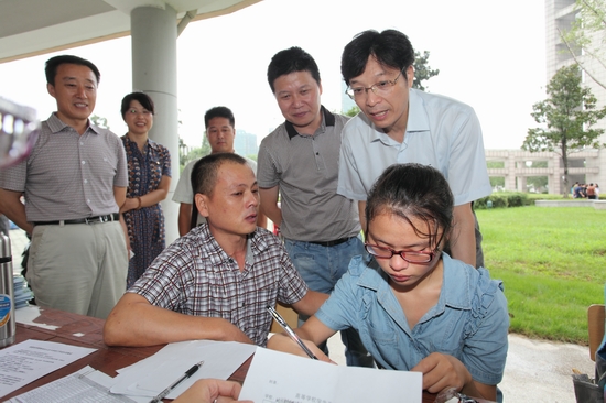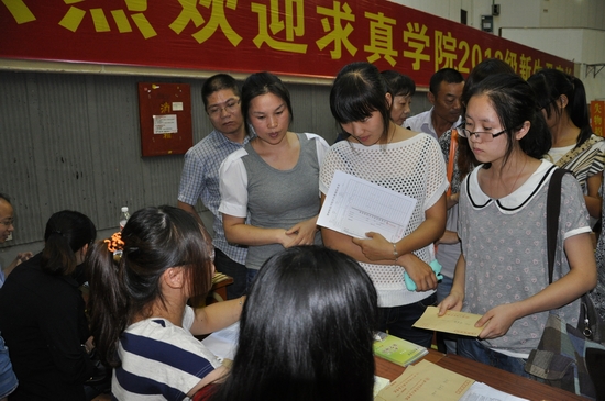 据了解,为帮助新生准确、便捷地办理报名手续,求真学院基础部制定了详细的方案,对迎新场地进行了精心布置。迎新现场前面设立了报到流程指示图、宿舍分布表和班级接待点,在东中西三校区共设了十多处咨询点、接待处,并安排学生干部、志愿者分批值班,对口班学长接待全上阵,做到24小时无间断地接待新生。另外,鉴于东西校区距离远、往返不方便,基础部在校园的主干道、交叉口、寝室楼入口等处安排大批志愿者引导新生及家长乘坐车辆往返于东西校区,同时还贴心地为家长做好返程指引工作。