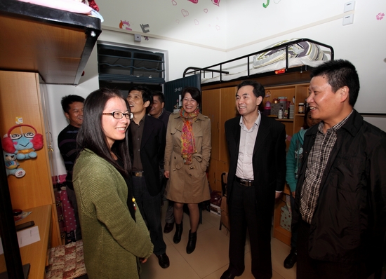 11月2日下午,校党委书记刘剑虹、副书记周家健,副校长黄建平在相关职能部门的陪同下,赴学生公寓检查指导文明寝室建设工作。