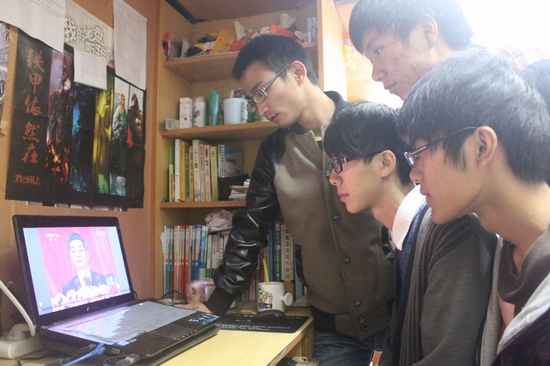 广大学生党员和青年团员在团委等部门的组织下,在多媒体教室和会议室集中收看党的十八大开幕盛况。实况转播结束后,学生们难掩兴奋喜悦,纷纷放弃午休投入了热烈的讨论。同学们认为,中国共产党是执政党,党的代表大会是关系国家发展和民族前途命运的大会,作为大学生理应关注党的发展,尤其是要学习党的理论,贯彻党的路线方针政策,特别是要在党的重大活动上积极参与,深入学习。十八大是党在我国深化改革开放和转变经济发展方式攻坚期召开的一次十分重要的会议,这不仅为广大师生献上了一份提升政治思想的好礼,也提供了学习党、了解党的新平台。听完总书记的报告,大家为党的成就、国家发展感到振奋,也深切感受到作为青年一代肩上沉甸甸的责任。校学生会主席冯佳青说,此次组织大家一起观看十八大会议的召开意义非凡,不仅让学生们关注时事,认真学习十八大精神,也能培养同学们的主人翁意识。师范专业的陈方圆说:作为师范生,我更关注教育问题,希望十八大代表能更好的反映我们的教育现状,我国能提高现有的教育水平。