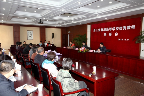 11月14日下午,我校召开浙江省首届高校优秀教师表彰会,表彰我校获此殊荣的祝守新、欧阳成两位老师。校长胡璋剑出席会议,相关职能部门、学院负责人、教师代表等参加会议。会议由副校长蒋云良主持。