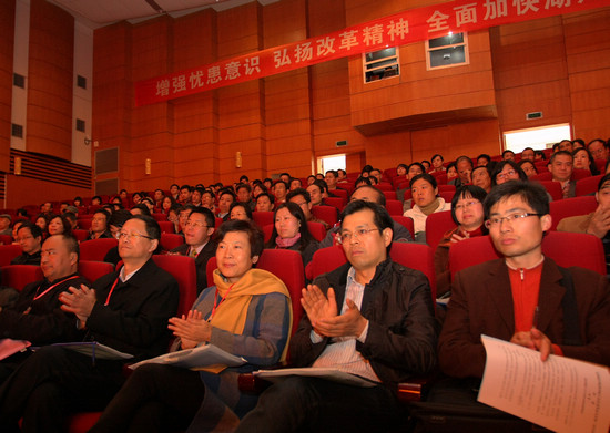 刘剑虹强调,建设“湖州大学”之路使命光荣、任重道远,在“十八大”精神引领下,只要大家同心协力、共同奋斗,目标一定能够实现,我们也一定能够创造无愧于全体师生、无愧于这所学校、无愧于湖州人民的新业绩。