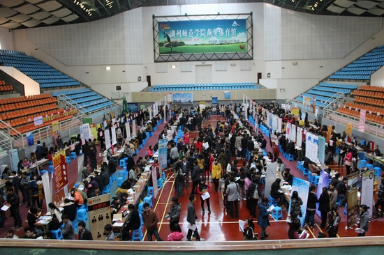 11月24日,我校2013届毕业生大型(综合)招聘会在燕英体育馆举行,共有来自湖州、嘉兴、杭州、金华、台州、绍兴、温州、苏州等地的200多家用人单位提供近2000个岗位,我校本科毕业生及其它省内外高校毕业生共4000余人参加了本次招聘会。