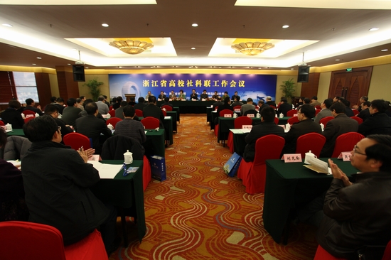为深入贯彻党的十八大和省第十三次党代会精神,研讨交流高校社科联如何发挥自身优势,服务地方经济社会发展,为建设物质富裕、精神富有的现代化浙江作出积极贡献。12月10日-11日,浙江省高校社科联工作会议在我校隆重举行。浙江省社科联党组书记陈荣,省社科联党组成员、秘书长、规划办主任谢利根,湖州市委常委、宣传部长胡菁菁,我校党委书记刘剑虹、副书记周家健出席,省社科联各处室领导、各高校社科联主席、副主席等100余名代表参加了会议。会议由省社科联主席、浙江工商大学党委书记蒋承勇主持。