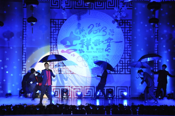 晚会在喧腾的舞狮表演中拉开了序幕;文学院刘方教授、胡淑娟教授带来的配乐诗朗诵《青春岁月的记忆》将观众们带回到那段青葱岁月;舞蹈《吉庆有余》、《世纪春雨》和《渔歌》把新春的祝福融入到曼妙的舞姿中,为师生们送上了吉祥美好的祝愿;由教师教育学院和先锋网的同学们设计制造的机器人也登上舞台舞出了别具一格的《机器style》,正是这段舞蹈让他们获得了今年的全国机器人舞蹈大赛一等奖。