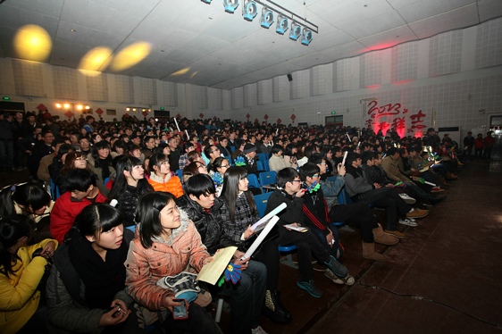 扬起青春的风帆远航,共筑师院的美好明天。12月30日晚,湖州师范学院2013年元旦文艺晚会在梦想剧场隆重举行。校党委书记刘剑虹、校长胡璋剑,党委副书记周家健、钱坤方,纪委书记徐桂宝,副校长黄建平、蒋云良等领导观看了本台晚会。千余名师生相聚一堂,恭贺元旦,喜迎新的一年。