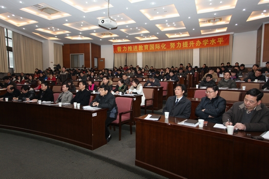 为适应高等教育国际化趋势,加快我校教育国际化发展进程,统一思想,凝聚共识,1月5日,我校召开首届教育国际化工作会议,校领导出席,全体中层干部、学科带头人、民主党派负责人及各学院外事秘书参加了会议。