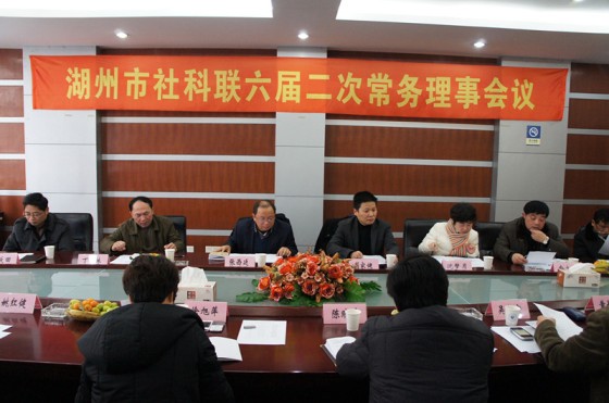 1月6日,湖州市社科联六届二次常务理事会议在我校顺利召开,会议总结了2012年市社科联工作,并对2013年相关工作作了安排部署。校党委副书记、校社科联常务副主席周家健,市社科联主席张西廷,市社会科学院院长俞立安,市发改委副主任倪跃田,市委党校副校长舒根川,湖州职业技术学院党委副书记丁根林,市社科联秘书长张前方等出席了会议,会议由市社科联副主席沈梦月主持。