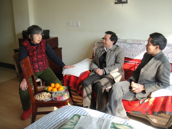 校长胡璋剑在看望慰问退休老同志时,首先介绍了学校的发展情况,感谢他们为学校发展所做出的贡献;并询问了他们的生活情况,表示学校会一如既往地关心他们,让他们安度晚年。