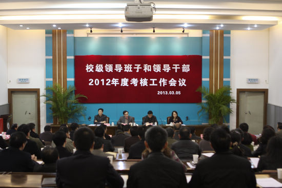 与会人员分别对校级领导班子和领导干部、2012年干部选拔任用工作及新选拔任用的干部进行了民主测评和评议。