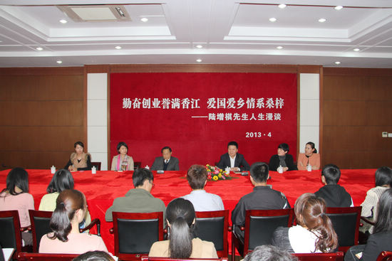 这一幕是出现在“勤奋创业誉满香江 爱国爱乡情系桑梓——陆增祺先生人生漫谈”主题报告会现场的互动情景。