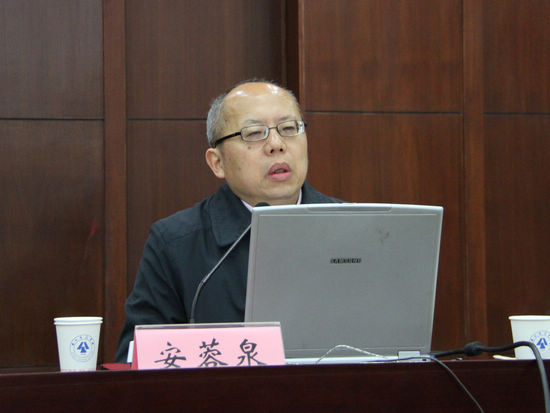 上午,安蓉泉教授作了《以改革创新的精神提高党的建设科学化水平》的专题辅导报告。安蓉泉指出,目前党的建设面临新形势、新问题,要充分认识党的建设的重要性,认清党的建设面临的“四大考验”和“四大危险”,牢牢把握加强党的执政能力建设、先进性和纯洁性建设这条主线,增强自我净化、自我完善、自我革新、自我提高能力,建设学习型、服务型、创新型的马克思主义执政党。安蓉泉分析了高校党建工作存在的问题和背景条件,认为高校要不断提升党政合作水平、党建结合水平、中层德才水平和思政融入水平,从党建工作与业务工作结合点的探索和创制上狠下功夫,以改革创新精神全面提高党的建设科学化水平。