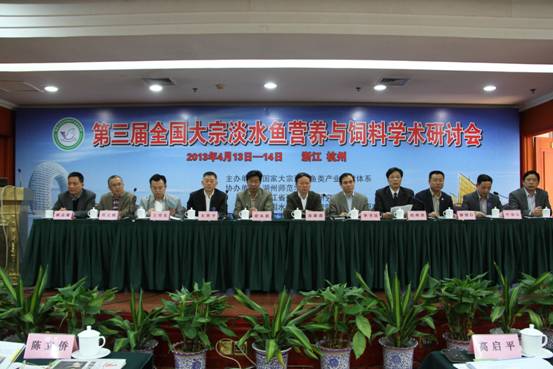 4月13日至14日,由国家大宗淡水鱼类产业技术体系主办,湖州师范学院、浙江省淡水水产研究所和中国水产科学研究院淡水渔业研究中心协办,体系营养与饲料研究室与杭州市农科院承办的第三届全国大宗淡水鱼营养与饲料学术研讨会在杭州召开。中国海洋大学院士麦康森,农业部渔业局副局长李书民,浙江省海洋与渔业局副局长俞永跃,国家大宗淡水鱼类产业技术体系首席科学家戈贤平研究员,我校校长胡璋剑等出席会议。会议开幕式由国家淡水鱼类产业技术体系岗位科学家、副校长叶金云主持。