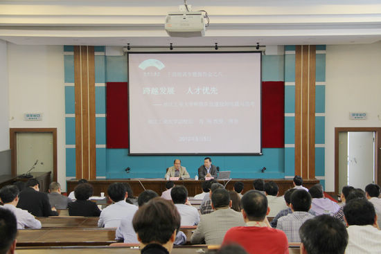 5月5日下午,浙江工业大学副校长肖刚教授应邀来校,作“跨越发展 人才优先——师资队伍建设的实践与思考”干部培训报告。校党政领导班子成员出席,中层干部、民主党派和知联会负责人,全体教授、校级以上重点学科带头人,系、实验室主任,研究所所长,部分管理干部等一起聆听了报告。报告会由副校长陆永良主持。