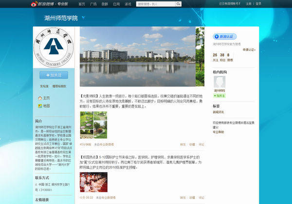 湖州师范学院官方微博是学校形象的一张“新名片”,党委宣传部将不断对其予以完善,敬请大家关注并提出宝贵意见和建议。