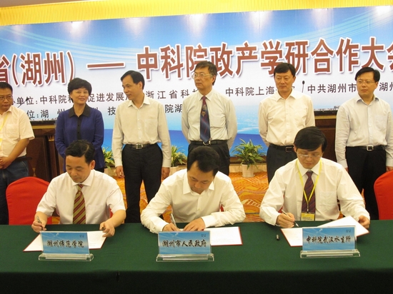 5月20日上午,由中科院科技促进发展局、浙江省科技厅、中科院上海分院、中共湖州市委、湖州市人民市政府联合主办的第四届浙江省(湖州)——中科院政产学研合作大会暨签约仪式在湖举行。市委书记马以,市委副书记、市长金长征,中科院上海分院党组书记、副院长王建宇,省科技厅副厅长曹新安和市领导高屹、董立新,中科院水生所副所长徐旭东等出席活动。
