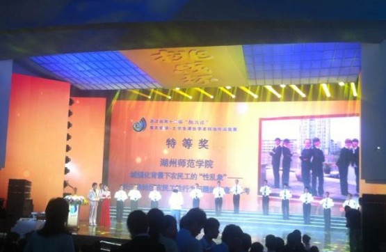 5月24日至26日,浙江省第十三届“挑战杯”大学生课外学术作品竞赛在宁波大学举行,我校荣获特等奖1项,二等奖2项,三等奖3项的历史最好成绩。其中《城镇化背景下农民工的“性乱象”——长三角地区农民工性行为问题的调查与思考》作品,荣获特等奖;《“减负万里行”背景下,中小学生课外活动的“乱象”调查与思考》和《汽车尾气固体颗粒吸附系统》项目获二等奖;《基于精子冷冻途径的太湖流域特色淡水经济鱼类资源保护研究》、《C4资源抽提丁二烯生产顺丁橡胶项目的开发设计》和《放射线检测装置》项目获得三等奖。