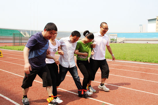 “加油!加油!”比赛期间,整个运动场都洋溢着激情欢畅的氛围,加油喝彩声不断,尤其是三人板鞋跑、六人搬运篮球接力赛、趣味套环等趣味性与竞技性都很强的集体项目中,观众的热情更是高潮迭起。“小心!”有的教职工中途被绊倒,依然匆忙起身,一路跌跌撞撞奔向终点,观众都以热烈的掌声表示崇高的敬意。在六人搬运接力赛中,一名教职工运动员因跑得过急,把篮球都撒了一地,前后左右的教工职工帮忙拾球,拿到球仍毫无顾虑地跑着,逗得观众前仰后合。参赛教职工们也全身心地投入到比赛项目中,相互团结合作、配合默契,在集体六人齐步协作赛中,教职工们脸上都挂满了灿烂的笑容,在“一二、一二”整齐划一地口令声中顺利地走到终点。参赛的教职工们在锻炼自己的同时,也为观众奉献了精彩的视觉盛宴。一场场比赛,一阵阵笑声,无论哪个组别的参赛者仿佛都沉浸在无限的青春和活力之中。