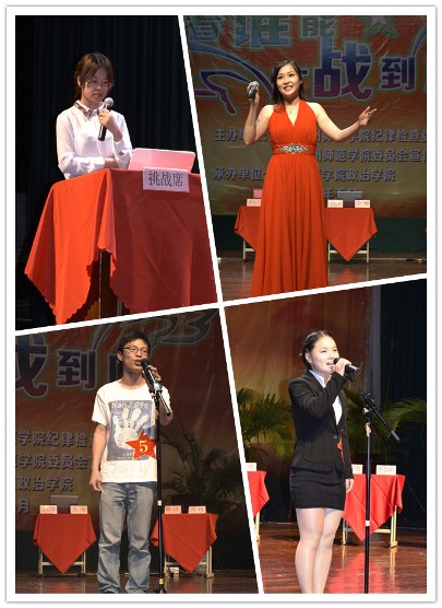 为认真学习贯彻落实党的十八大精神,全面领会党风廉政建设的新要求、新举措,引导并鼓励大学生领会十八大精神的深刻内涵和重大意义,由中共湖州师范学院纪律检查委员会、中共湖州师范学院委员会宣传部主办,政治学院承办的党的十八大精神及党风廉政知识竞赛总决赛于5月31日晚在艺术学院音乐厅隆重上演。主办单位及承办单位、部分二级学院相关负责人参加活动并为获奖选手和二级学院颁奖,政治学院沈晓阳、孙和平、殷国伟三位教授担任比赛评委,来自全校近400名师生观看比赛。