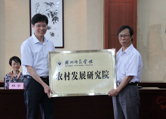 仪式上,金建新为“湖州市农村发展研究院”授牌,胡璋剑为“湖州师范学院农村发展研究院”授牌,并为农村发展研究院名誉院长金建新、崔凤军颁发了聘书。