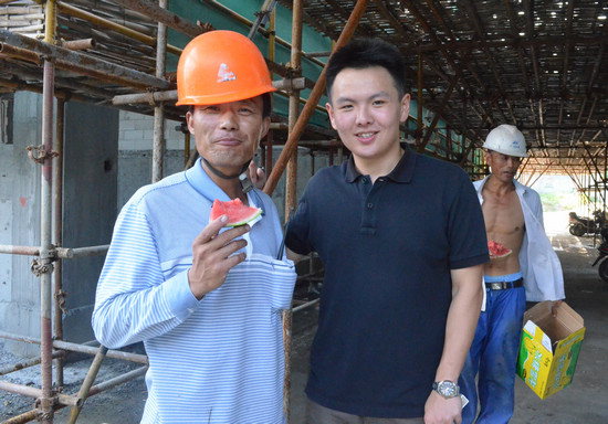 社会发展与管理学院“走入民营500强,共话企业创新路”团队走进建筑工地为工人送上清凉的西瓜