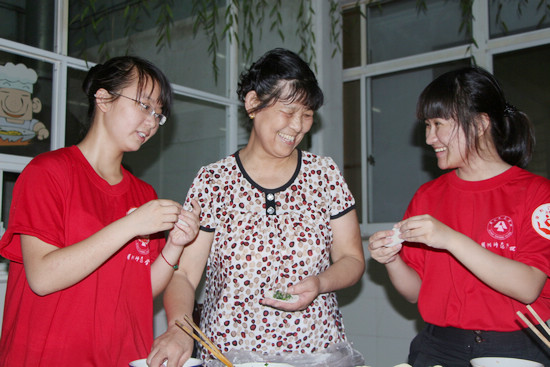 求真学院基础部“关爱失群老人,实现青年理想”实践服务团陪伴老人一起包饺子