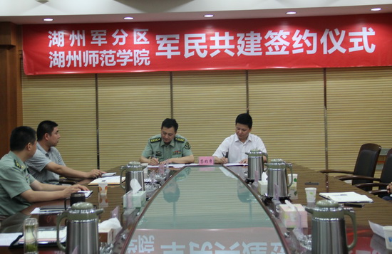 为了把军民双拥共建活动抓实、抓细、抓出成效,推动学校和部队建设的全面发展,真正达到共建互利的目的,日前,我校与湖州军分区签订了双拥共建协议,建立共建关系。市委常委、湖州军分区政委温永东,校党委副书记周家健,湖州市民政局副局长、市双拥办副主任朱新芳,及我校宣传部、教务处、人武部、团委等相关职能部门负责人出席了签字仪式。