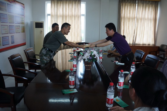 何少波代表部队对周家健一行的走访慰问表示热烈欢迎,对多年来给予部队建设的关心、支持和帮助表示衷心感谢,尤其是每年的“送文化下部队”活动,极大地丰富了广大官兵的业余文化生活,为军队送去精美的精神食粮,贴心的节日问候也给全体在酷暑中参加海训的官兵送上了阵阵清凉。希望双方今后进一步加强交流与合作,共同为人才培养和国防建设做出更大的贡献。