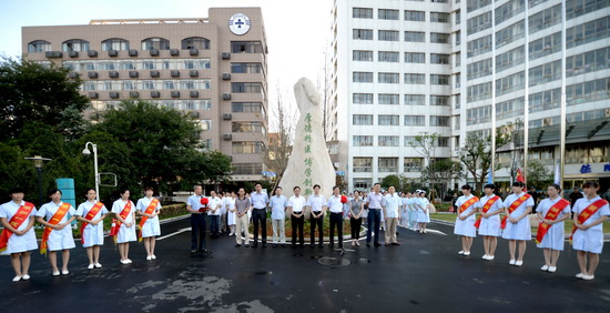 7月30日上午,附属医院举行新大门启用仪式。校长胡璋剑、市卫生局局长施会龙出席,院长鲍鹰、党委书记朱鸣等附属医院全体领导,科主任、护士长和职工代表共计100余人参加仪式。