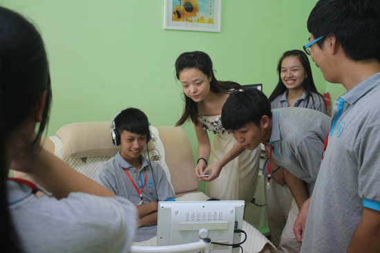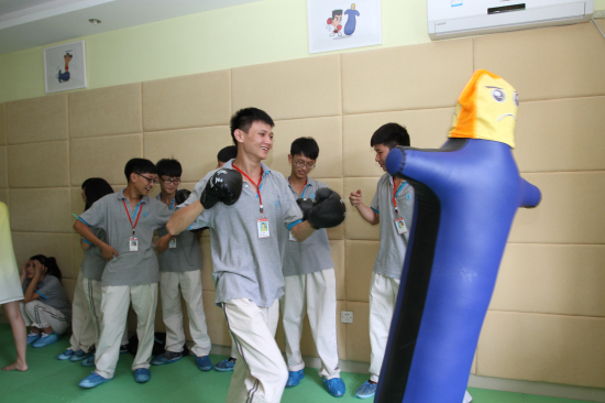 来自湖州市中小学的30名同学分别参观了我校心理健康教育指导中心的各个功能室,并在我校心理专家的指导下,体验了沙盘游戏治疗、智能互动宣泄仪、减压训练仪及音乐放松等专业心理体验。随后,同学们还参加了来自湖州市青少年咨询中心组织的团体辅导体验课。