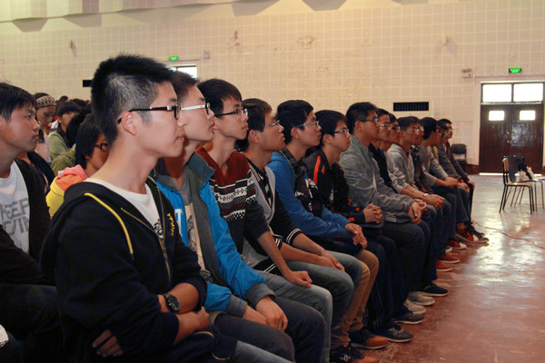 “各位同学将来要成大事,除了有大志之外,还必须要守住一份执着。”胡璋剑举了生命科学学院最牛寝室的例子,这个寝室的五位男生在去年的研究生考试中全部上榜。“他们为了达到这个目标,坚持不懈,正因为坚持和付出,才有今天的收获。”胡校长用曾经教育儿子的话告诉在场同学们:“给自己一个目标,每天进步一点点,四年以后必定会到达理想的彼岸。”