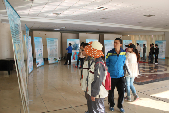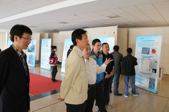 前来参观的师生们认真听取讲解,并不时进行询问和探讨。参加成果展的理学院教师张天声表示:“这次成果展让全校师生了解到我校在科技文化创新和服务地方方面取得的成就,希望学校以此为契机,争取有新的突破。”