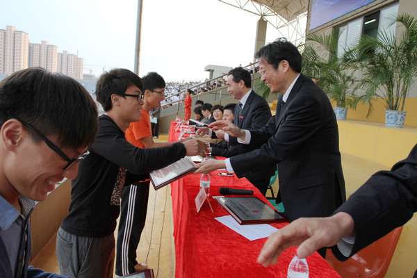 闭幕式上,总裁判长庞国庆宣布各项比赛成绩及获奖名单。理学院、信息与工程学院、商学院分获普通学生组团体总分前三名;体育学院110312班、130312班、120312班分获专业学生组团体总分前三名;信息与工程学院、医学院、理学院分获教工组团体总分前三名。商学院和信息与工程学院获“优秀组织工作奖”;政治学院、教师教育学院、生命科学学院和医学院·护理学院荣获“体育道德风尚奖”。