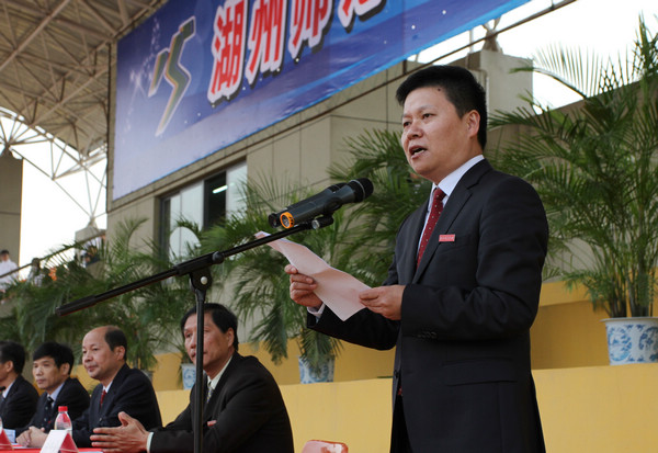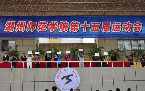 在热烈的掌声与欢呼声中,校长胡璋剑宣布湖州师范学院第十五届运动会闭幕。