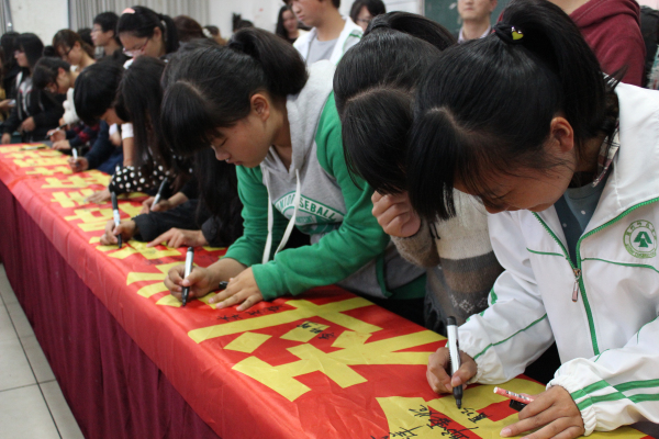 会上,学院相关负责人就志愿服务精神、服务理念等“大学之道”与所有志愿者们进行共勉,并表示,学院非常重视大学生青年志愿者的精神与道德培养,希望通过一系列的志愿服务活动让学生用行动感恩母校,感恩社会,用崇高的志愿服务精神诠释和谐的“中国梦”。志愿者代表于淼同学在发言中说道:“青年志愿者精神是对中华民族团结友爱、助人为乐、见义勇为、尊老爱幼、尊师重教等传统美德的继承和发扬光大,我们应当勇于奉献,敢于担当”。随后全体师生志愿者面向旗帜隆重宣誓,承诺将尽己所能,不计报酬,帮助他人,服务社会,奉献真诚。最后,在学院分团委相关负责人的倡议下,师生志愿者们纷纷在横幅上签字,用行动践行志愿精神。