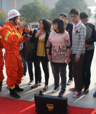 秉着“深化我校师生消防安全意识、杜绝火灾隐患、提高扑救初起火灾、应对突发事件能力”的宗旨,围绕“真操实练学本领,寓教于乐长才干”的主题,本届消防趣味运动会设置了油桶灭火、油锅灭火(五彩油锅)、水带水枪灭火(蛟龙出海)、燃气罐灭火(飞火怒张)、高空逃生、穿越火线、设备辨识和隐患排查8个比赛项目。虽然在比赛中状况不断,但来自各个学院的同学们积极参与、团结合作的热情却不减。其中油桶、油锅、煤气罐灭火三个项目每组六名同学接力完成。在面对最令人恐惧的煤气罐灭火时,来自文学院的汪继亮同学表现出色,只见他冲到正在燃烧的燃气罐跟前,用湿毛巾盖住火苗,迅速关上开关,成功扑灭火情,赢得了在场观众的掌声。“煤气罐是生活中的常见、常用物品,但是今天才知道煤气罐着火怎么去扑灭”,汪同学说:“要是以后真的遇上火灾就不会手忙脚乱,这种知识还是需要多学习学习的。”